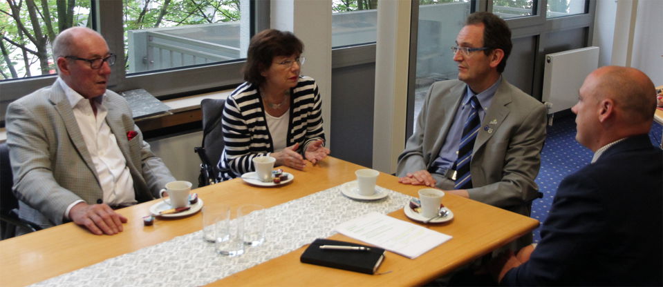 Daniel Born und Rosa Grünstein im Gespräch mit Dr. Ralf Göck und Roland SchnepfBrühl. Einer alten Tradition folgend besuchten die SPD-Landtagsabgeordnete Rosa Grünstein und der SPD-Landtagskandidat Daniel Born zu einem Meinungsaustausch Bürgermeister Dr. Ralf Göck im Rathaus Brühl. Begrüßt wurden sie vom Hausherren und dem Brühler SPD-Fraktionsvorsitzenden Roland Schnepf.