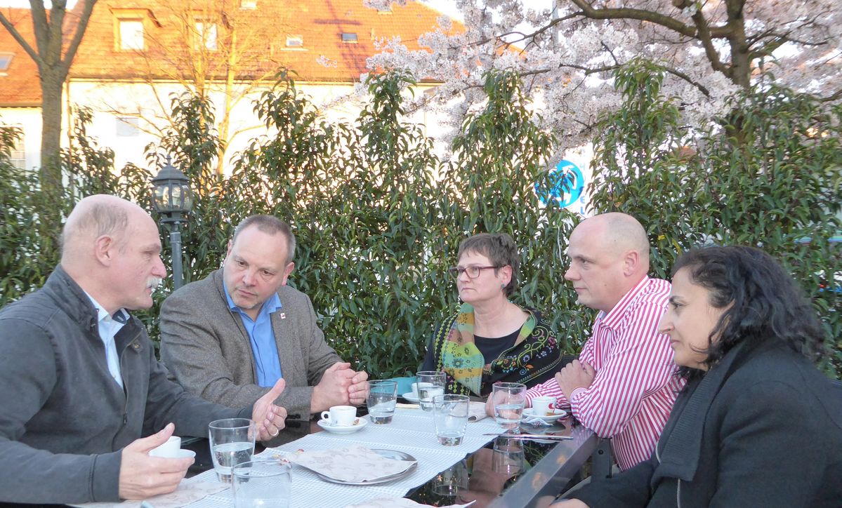 Schwetzingen/Brühl/Neulußheim/Altlußheim. Am Montag war die SPD-Landesvorsitzende und Spitzenkandidatin für die Bundestagswahl Leni Breymaier auf Einladung des Landtagsabgeordneten Daniel Born im Wahlkreis 40 zu Besuch. Gespräche mit dem Bürgermeister von Brühl und dem Oberbrügermeister von Schwetzingen, ein Austausch zu wohnungsbau- und arbeitsmarktpolitischen Themen aber auch der Besuch eines Gemeindebauprojekts für mehr sozialen Wohnraum standen auf der Agenda. Den Schwerpunkt setzen die beiden gemeinsam mit Bundestagskandidatin Neza Yildirim aber auf den direkten Kontakt mit Bürgerinnen und Bürgern. So kamen sie z.B. mit den Mieterinnen und Mietern in der besichtigten Wohnungsanlage als auch mit Mitwirkenden des Solidaritätskreises für die Goodyear-Beschäftigten ins Gespräch. Und dann waren da natürlich die schönen Veranstaltungen, die die Sozialdemokratinnen und Sozialdemokraten vorbereitet hatten. Einmal ein "Kaffeeklatsch" bei der SPD Schwetzingen und ein politischer Diskussionsabend mit Ehrungen von SPD und AsF Altlußheim. Ein Video der Landesvorsitzenden, sowie eine Bilderstrecke und die zugehörigen Presseartikel finden Sie hier.