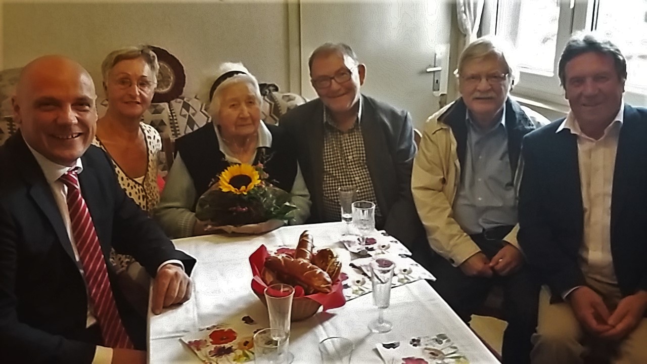 Altlußheim. Zum 95. Geburtstag von Elsa Fischer starteten ihr am Montagmittag Landtagsabgeordneter Daniel Born gemeinsam mit dem SPD-Ortsvereinsvorsitzenden Dieter Hoffstätter einen Besuch ab. Auch die beiden Seniorenbeauftragten der Altlußheimer Sozialdemokraten, Christa Rettig und Dr. Karl-Heinz Haar begleiteten den Abgeordneten und überreichten dem Geburtstagskind einen Blumenstrauß und ein Präsent. „Elsa Fischer hat sich in der SPD Altlußheim seit mehr als 50 Jahren aktiv eingebracht, da ist es selbstverständlich, dass wir ihr zum Geburtstag persönlich gratulieren“, erklärt der Landtagsabgeordnete Born.