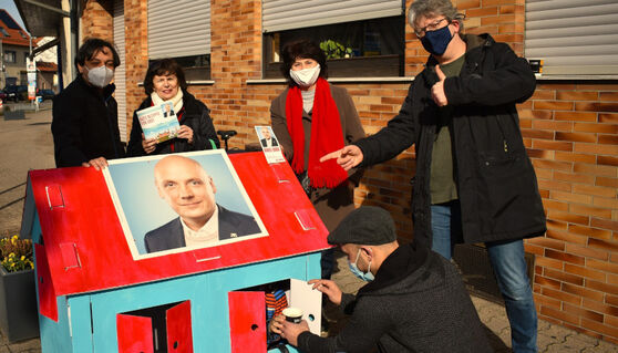 Altlußheim/Schwetzingen. In Zeiten, in denen klassische Infostände nicht immer gemacht werden können, hilft das „Haus mit dem roten Dach“. Ein Blickpunkt auf den Marktplätzen mit jeder Menge Infos zum Mitnehmen in den Blumenkästen. „Und es verfügt über einen eigenen Briefkasten, der von Interessierten als zusätzliche Möglichkeit genutzt werden kann, Nachrichten an mich und mein Team zu hinterlassen“, freut sich der Wahlkreisabgeordnete Daniel Born. „Ein eigens für die Kommunikation mit Interessierten entworfenes Mini-Haus dient dabei als Zentrum der Information und Diskussion von Fragen rund um die Landes- und Bundespolitik. Aber auch kommunalpolitische Fragen sollen dabei nicht zu kurz kommen“, ergänzt der Schwetzinger Landtagsabgeordnete.