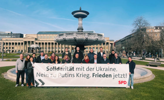 Die SPD Baden-Württemberg verurteilt den völkerrechtswidrigen Angriffskrieg von Wladimir Putin gegen die Ukraine. Wir stehen entschieden auf der Seite der freiheitlichen Demokratie und an der Seite der Ukraine. Ein Krieg mitten in Europa ist eine Katastrophe für die Menschen vor Ort und für unser freiheitliches und demokratisches Europa. Er bedeutet unglaubliches Leid für Millionen von Menschen. Als SPD Baden-Württemberg solidarisieren wir uns unmissverständlich mit den Menschen in der Ukraine.